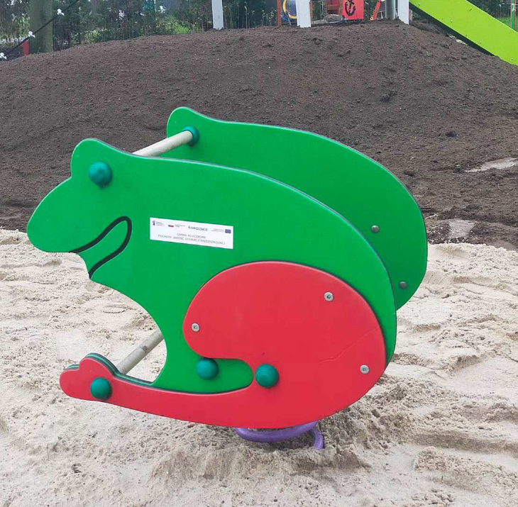 4) zakup i montaż urządzeń do zabaw ruchowych (bujaki, zestaw zabawowy-wieże, hopki ,tunele, mostek-stópki )