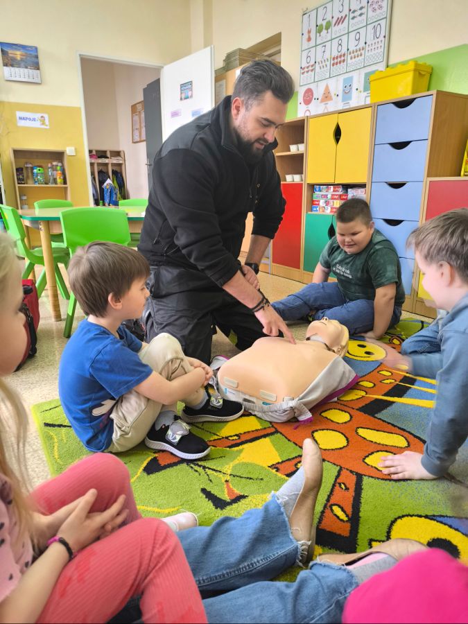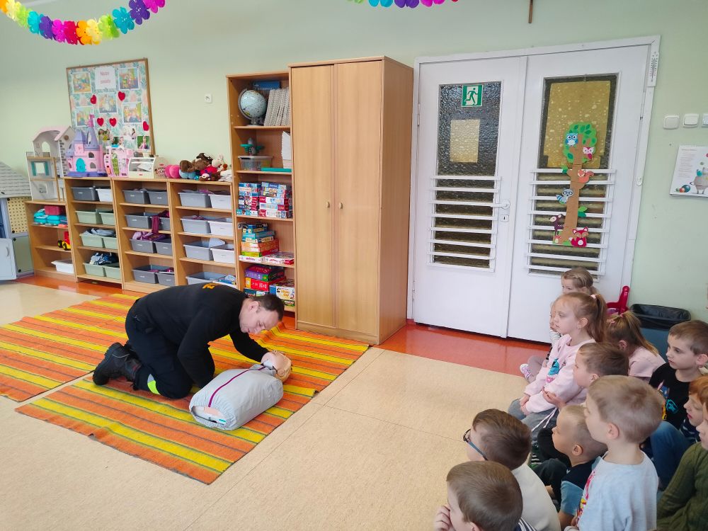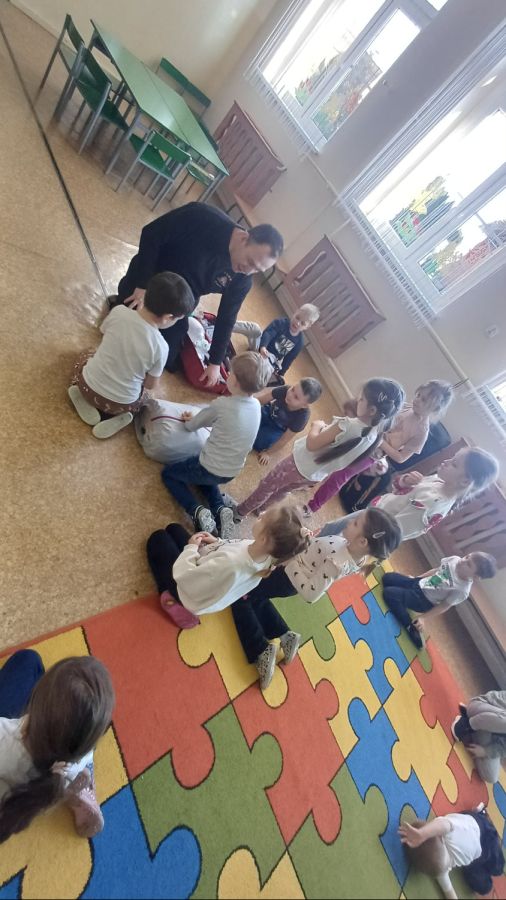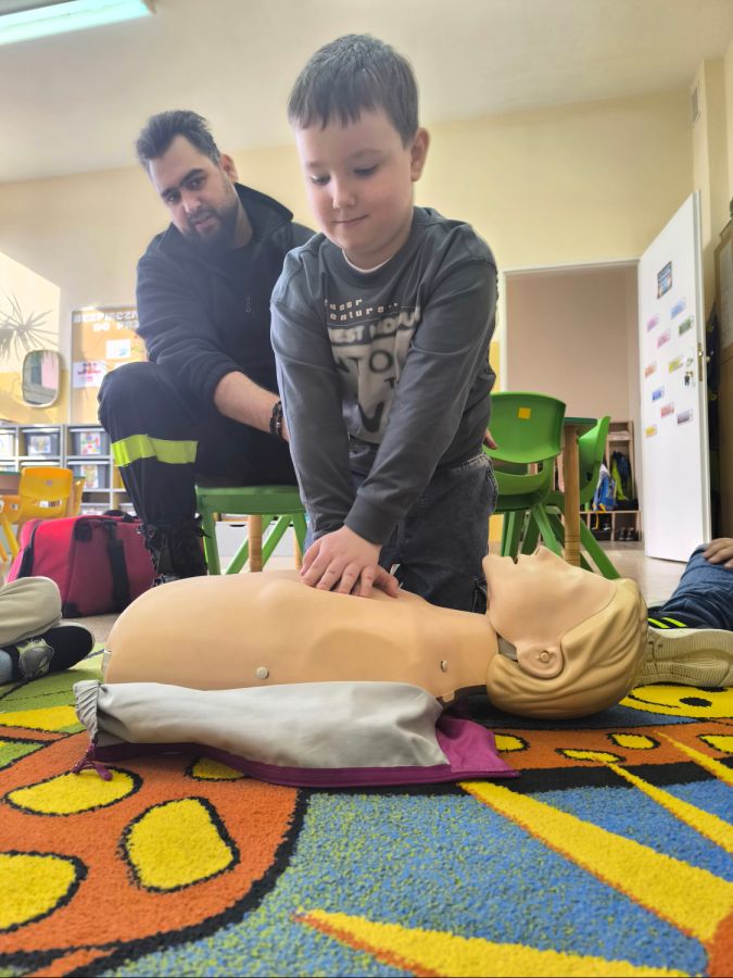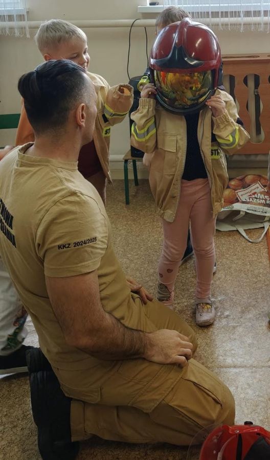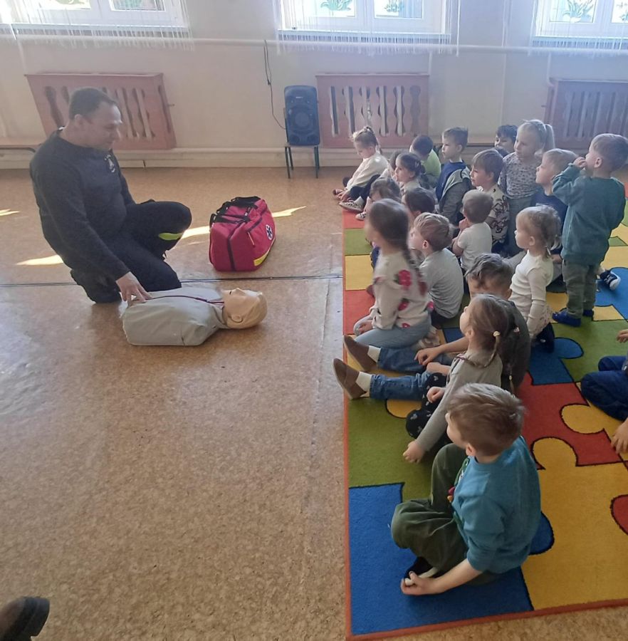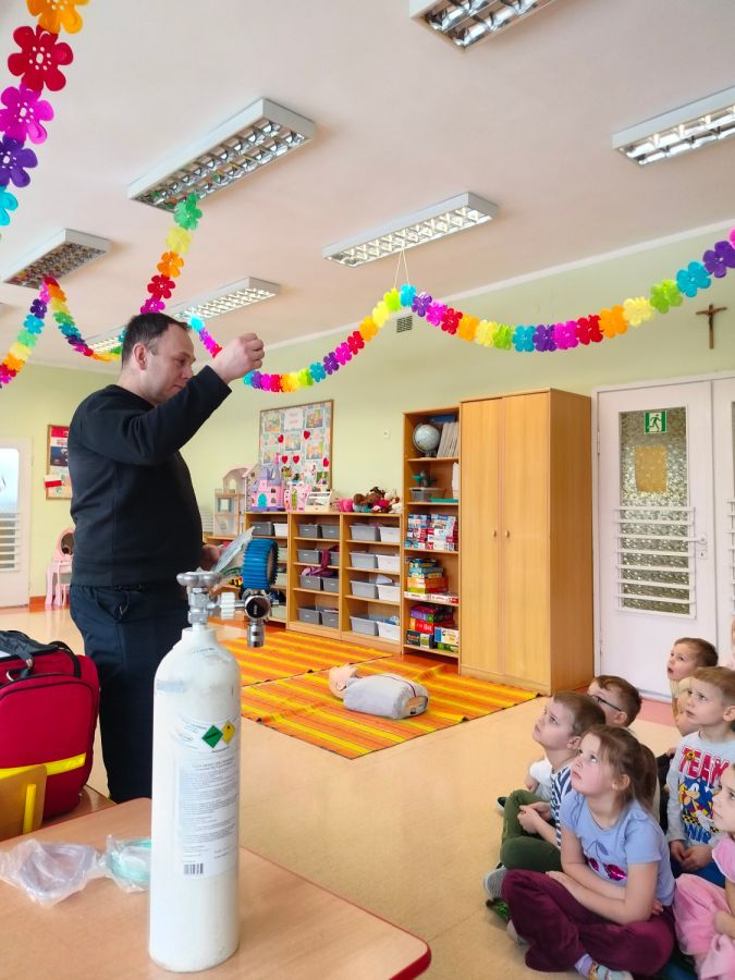 Kolejnym zadaniem realizowanym w XII.2025r. - II 2026r, była pierwsza pomoc przedmedyczna. Jednostka Ochotniczej Straży Pożarnej w Kuniowie jako partner projektu odpowiedzialna jest za realizację zadania nr 10. Strażacy przeprowadzili szkolenia z pierwszej pomocy przedmedycznej dla dzieci. Zapoznanie z zasadami powiadamiania- jak należy formułować komunikat, jaki jest numer ratunkowy, zapoznanie z sytuacjami, w jakich ich pomoc może być niezbędna- to tylko niektóre aspekty zajęć. Zarówno dziewczynki jak i chłopcy rozwijali podczas zajęć swoje zainteresowania, bowiem w treściach przedmiotowych unika się stereotypowego przypisywania określonych ról w ratownictwie danej płci. Podczas zajęć zostały uwzględnione zindywidualizowane potrzeby dzieci z niepełnosprawnościami. Zajęcia prowadzone przez członków OSP 2h/ grupę. Zajęcia zostały zorganizowane w styczniu i lutym 2026r. we wszystkich przedszkolach i oddziałach przedszkolnych przy szkołach podstawowych biorących udział w projekcie : Publiczne Przedszkole nr 1 w Kluczborku – 2 grupy (12K,12M); 2. Publiczne Przedszkole nr 2 z OI w Kluczborku – 2 grupy (14K,16M); 3. Publiczne Przedszklole nr 7 z OŻ w Kluczborku –2 grupy (11K,13M); 4. Publiczne Przedszkole nr 5 w Kluczborku – 2 grupy 18K,12M); 5. Publiczne Przedszkole nr 8 w Kluczborku 2 grupy (12K,12M); 6. Publiczne Przedszkole w Bogacicy – 2 grupy 912K,13M); 7. Oddziały przedszkolne przy PSP w Kuniowie – 1 grupa (7K,8M);8. Oddziały przedszkolne przy PSP w Bąkowie – 1 grupa (6K,6M); 9. Oddziały przedszkolne przy PSP w Kujakowicach Dolnych – 1 grupa (7K,8M).