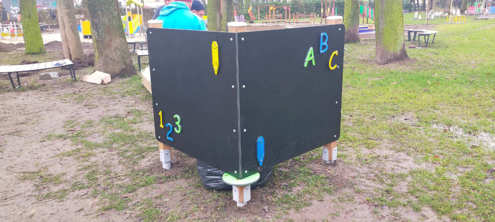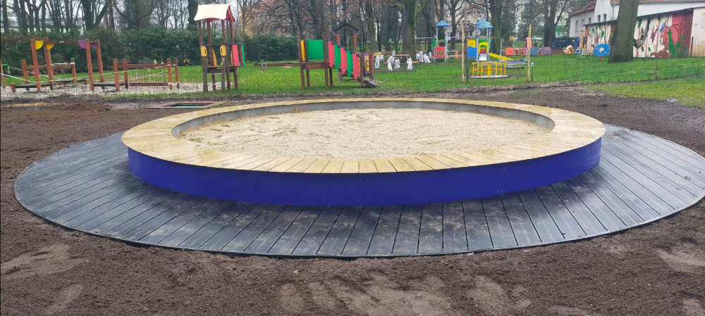 5) zakup i montaż pomocy dydaktycznych do prowadzenia zajęć na placu zabaw ( podwójna tablica do rysowania, fabryka piasku)